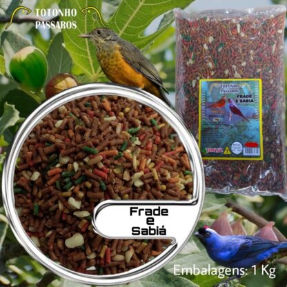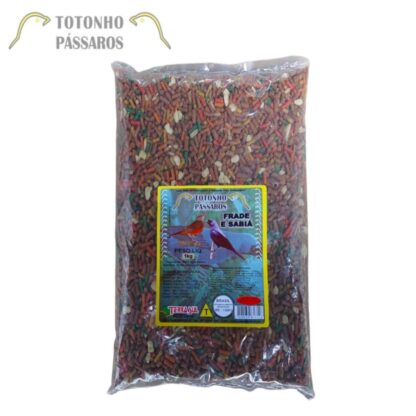 Alimento completo e balanceado com todos os nutrientes que a ave necessita. Composto por sementes muito ricas em nutrientes e também por extrusados e peletizados completos, capazes de desenvolver e manter a saúde do pássaro. Uma pequena quantidade de amendoim também compõe a mistura, uma vez que estas aves adoram este grão. As sementes são limpas e selecionadas, sendo muito adoradas pelos Frades e Sabiás.