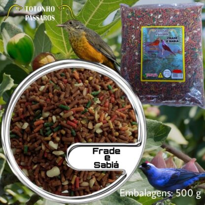 Alimento completo e balanceado com todos os nutrientes que a ave necessita. Composto por sementes muito ricas em nutrientes e também por extrusados e peletizados completos, capazes de desenvolver e manter a saúde do pássaro. Uma pequena quantidade de amendoim também compõe a mistura, uma vez que estas aves adoram este grão. As sementes são limpas e selecionadas, sendo muito adoradas pelos Frades e Sabiás.
