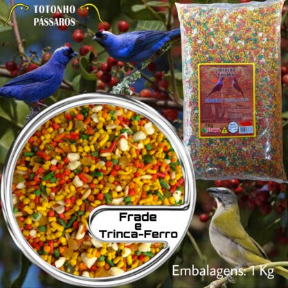 Alimento completo e balanceado com todos os nutrientes que a ave necessita. Composto por sementes muito ricas em nutrientes e também por extrusados e peletizados completos, capazes de desenvolver e manter a saúde do pássaro. As sementes são limpas e selecionadas, sendo muito adoradas pelos Frades e Trinca-Ferros.